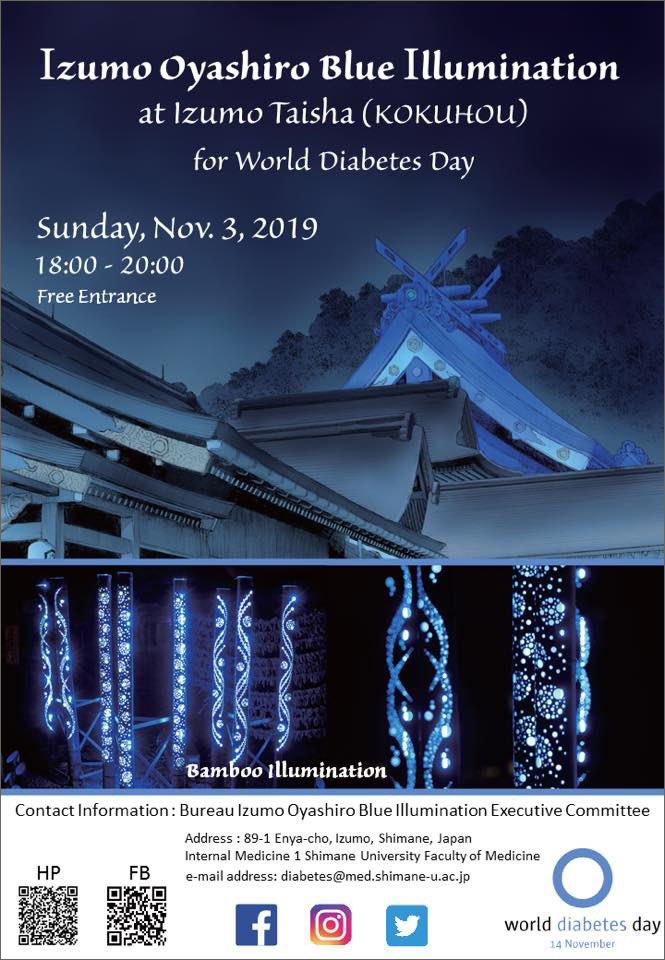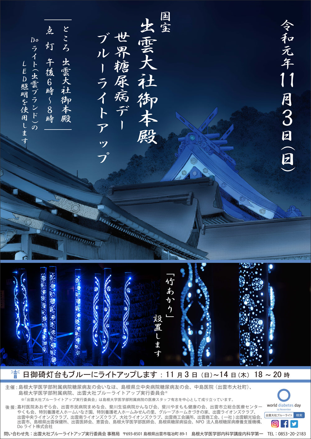 2019年11月3日、第5回「世界糖尿病デー」出雲大社ブルーライトアップを無事開催する事が出来ました。