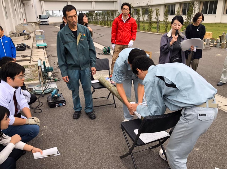 10月14日(月・祝)の朝9時から、島根県立出雲工業高等学校の敷地をお借りして、出雲大社ブルーライトアップに展示する「竹あかり」づくりが開催されました。出雲工業高等学校は、島根大学医学部附属病院から徒歩で約10分の距離にあります。