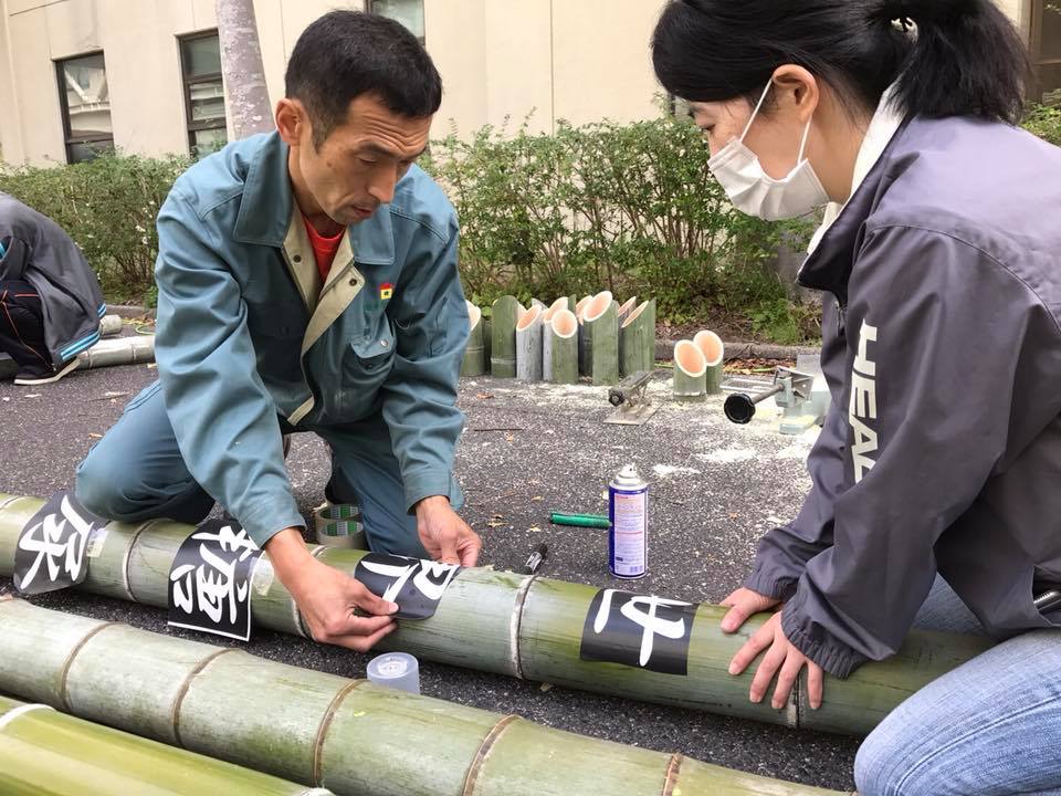 昨年の2倍の規模の竹あかりをみんなで作成しました