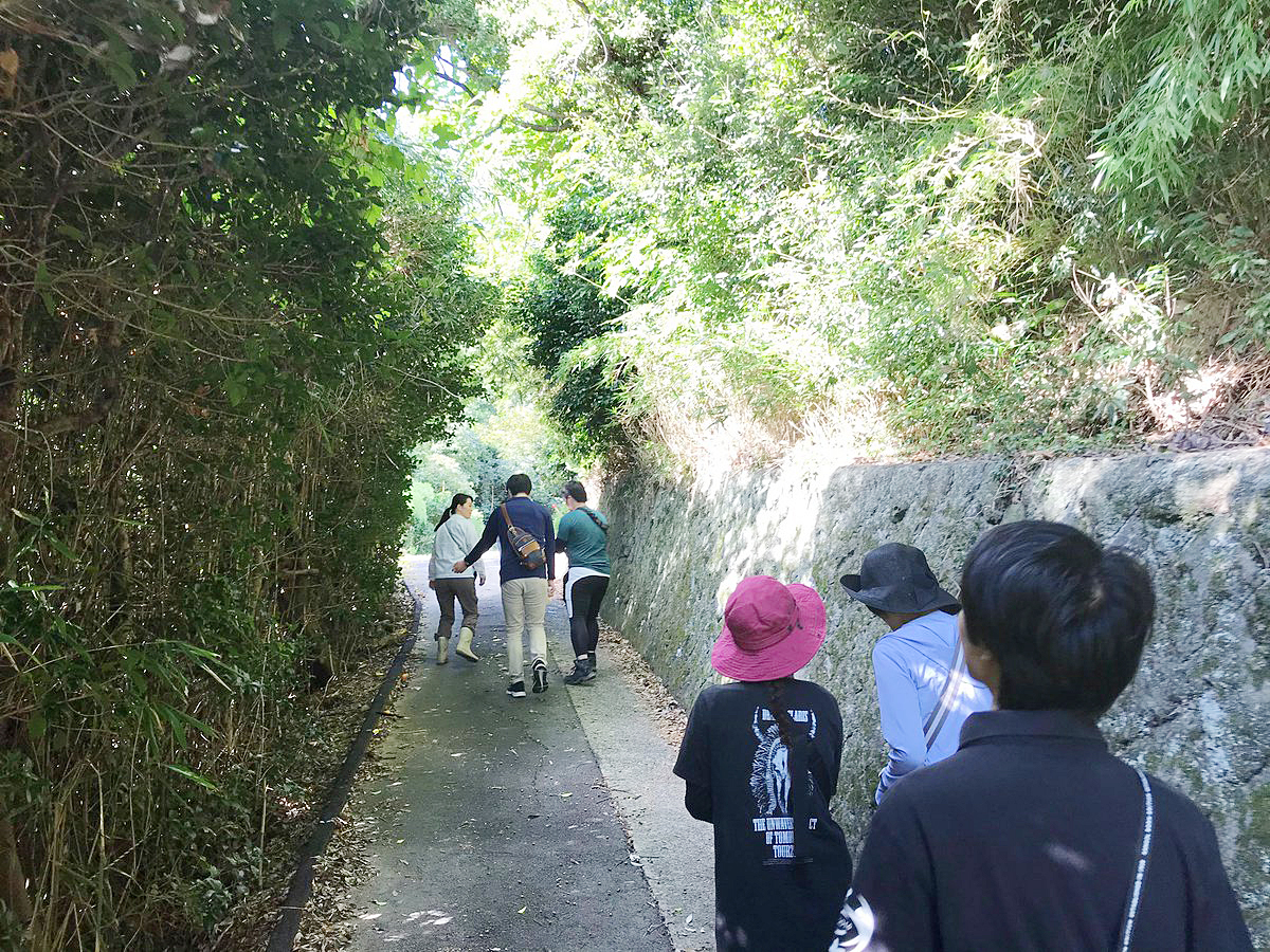 竹のある場所へ笹や植物のトンネルを歩いて上がっていきます。