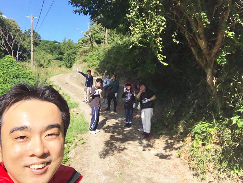 長袖長ズボン、歩きやすい靴で山を上っていきます。実行委員長は、しっかり長靴で完全防備で、はきこなしていますね。