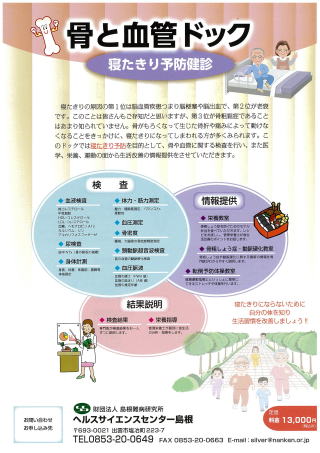 | 公開講座名 | 寝たきり予防を目的とした健診および体操教室「骨・血管ドック」 | |